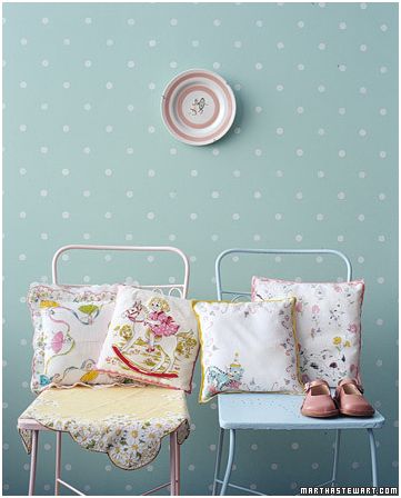 La fotografía que que veis, y que ilustra cómo decorar unas sillas para lograr un rincón bonito, la he encontrado en Martha Stewart.
